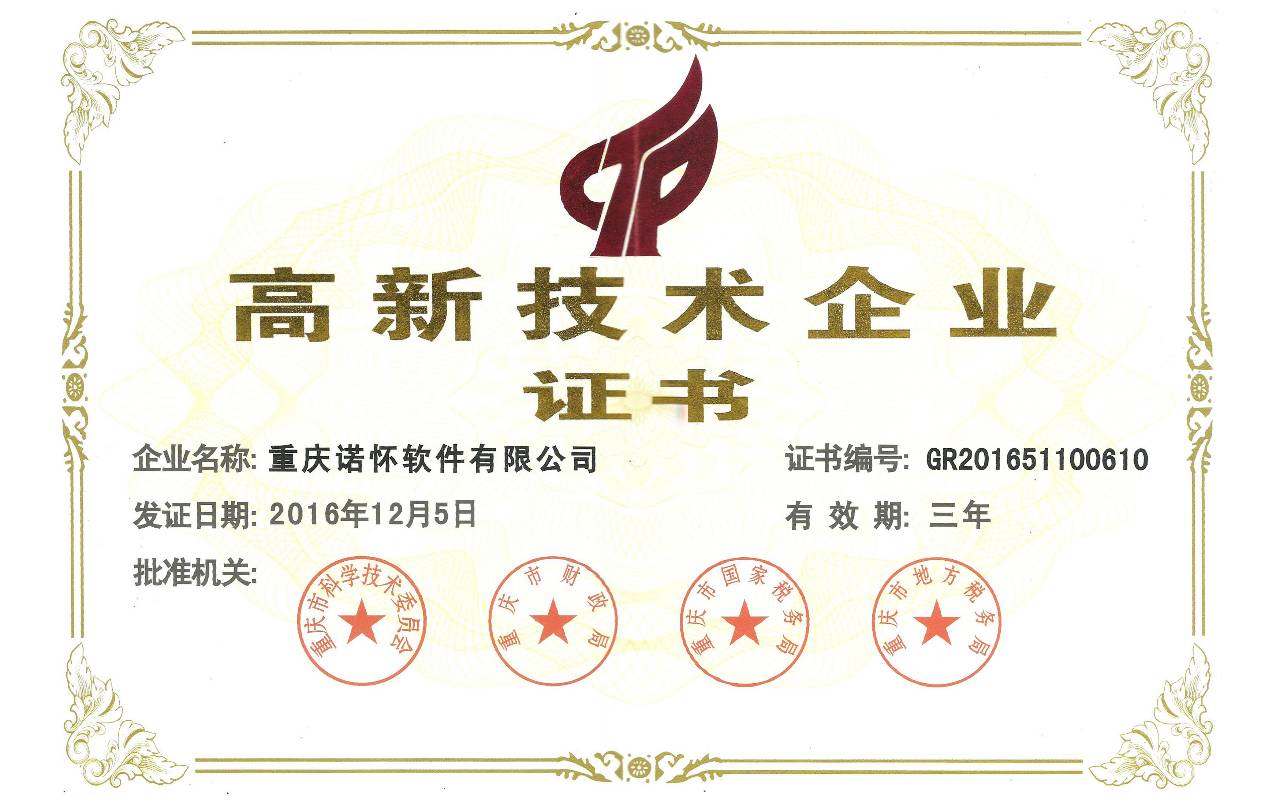 • 特大喜讯!诺怀软件荣获“高新技术企业”称号