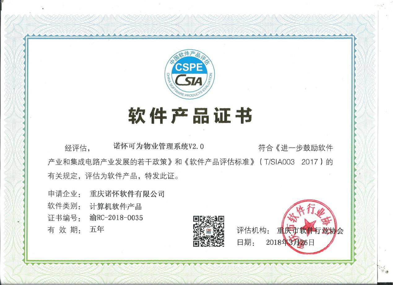 • 诺怀云物业获得软件产品认证 推动诺怀软件业务能力再升级